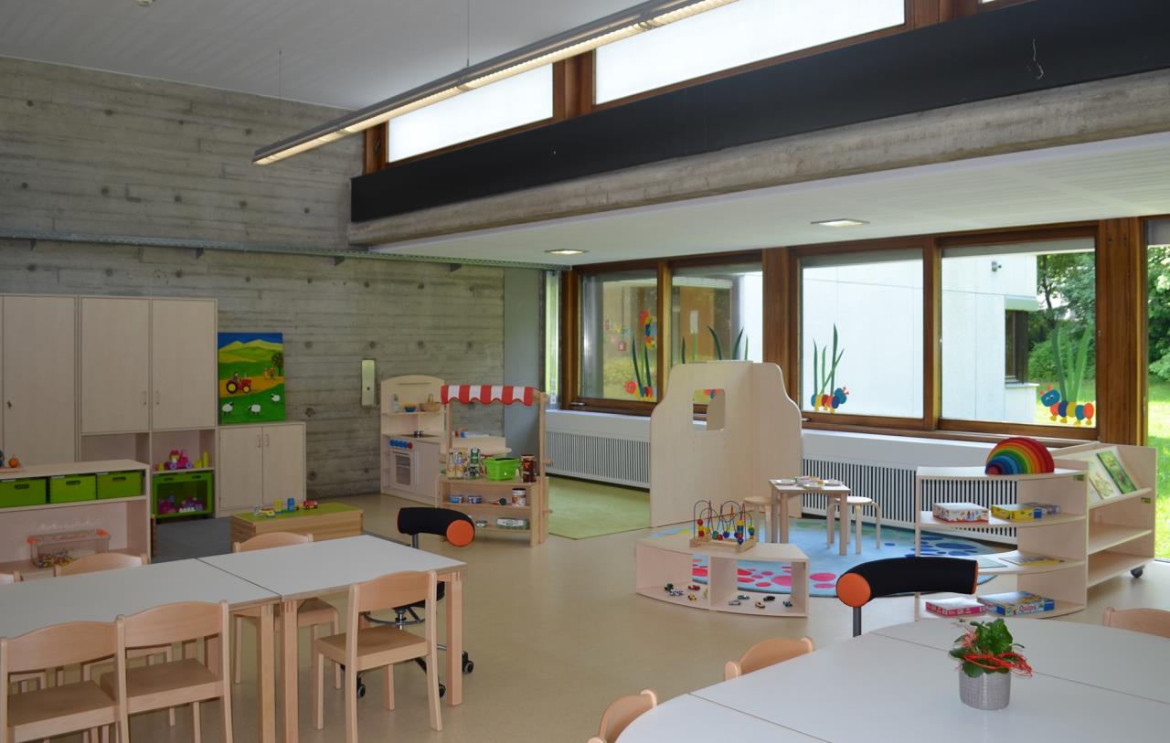 Da Kinder immer eine gewisse Eingewöhnungszeit benötigen, füllen sich die beiden neuen Gruppen erst nach und nach mit fröhlichem Geplapper. Nach diversen Umbaumaßnahmen der Stadt Göppingen, ist das ehemalige Grundschulgebäude in Ursenwang zu einer sehr modernen und großzügigen Kindertageseinrichtung umgestaltet geworden. In den Gruppenräumen gibt es funktionelle Bereiche, die die kleinen Entdecker zum Spielen einladen: Ein Rollenspielbereich, eine Bau- und Konstruktionsecke, eine Leseecke und viel pädagogisch wertvolles Spielmaterial animieren die Kleinen zum Spielen und fördern sie zugleich. Das Atelier ist ein weiterer Funktionsraum, der mit vielfältigen Farben und Materialien ausgestattet, den Kindern im Freispiel zur Verfügung steht. Hier können die kleinen Künstlerinnen und Künstler ihrer Kreativität freien Lauf lassen und schöpferisch tätig werden.