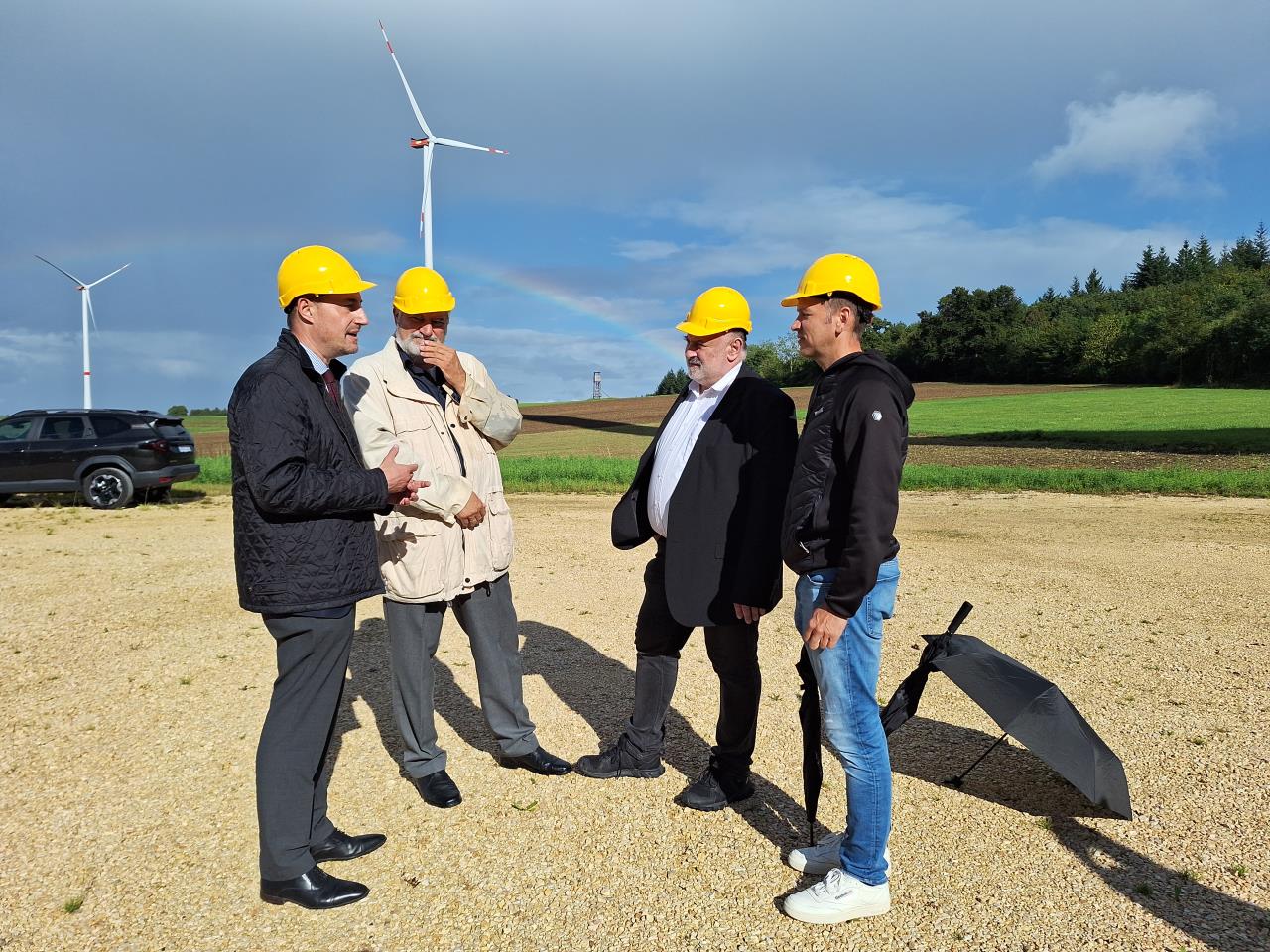 Nach einem Austausch zwischen Landrat Markus Möller, Bürgermeister Roland Lang aus Drackenstein sowie dem 1. Stellvertretenden Bürgermeister Armin Ramminger aus Hohenstadt stand der Besuch des Windparks Drackenstein auf dem Programm. Auch bei der anschließenden Besichtigung von Biogasanlage und Heizzentrale in Hohenstadt sowie der Vorstellung des dortigen Nahwärmekonzepts wurde deutlich, wie beide Gemeinden die Energiewende gestalten und dabei Wertschöpfung vor Ort generieren. Weitere Themen wie der A8-Ausbau und lokale Busverbindungen kamen ebenfalls zur Sprache.