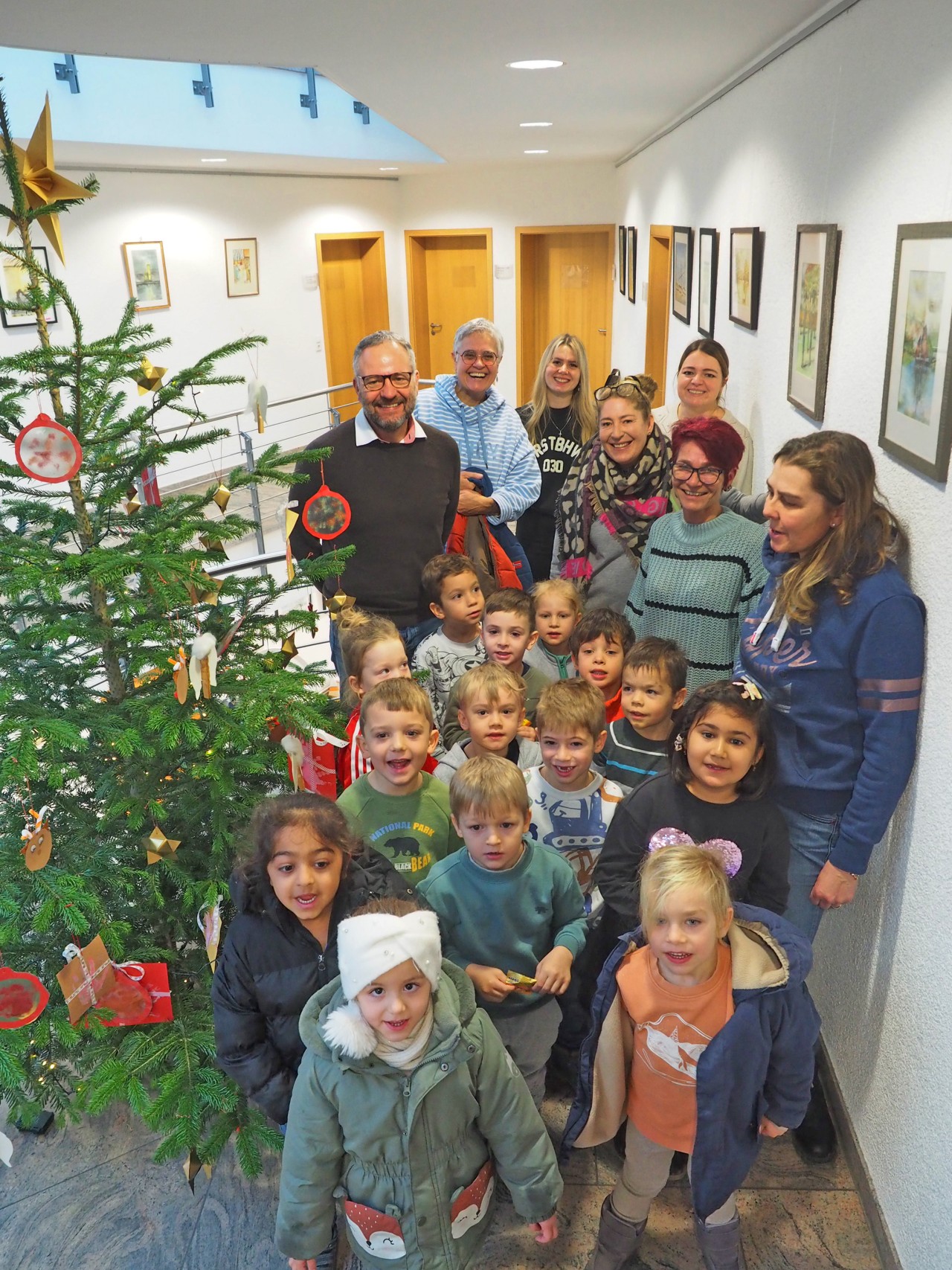 Es ist eine seit Jahren gepflegte Tradition im Rathaus der Stadt Uhingen: In der Adventszeit liefert der städtische Bauhof einen Baum, der im Inneren aufgestellt und nur mit einer Lichterkette verziert wird. Für den finalen Baumschmuck sorgen dann die Jüngsten der Stadt: Kindergartenkinder. Dabei wechseln sich die 13 Uhinger Kindergärten ab.