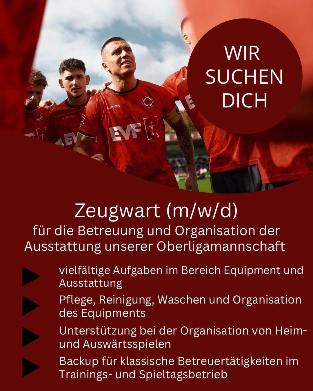 - Vielfältige Aufgaben rund um Equipment und Ausstattung der Oberligamannschaft