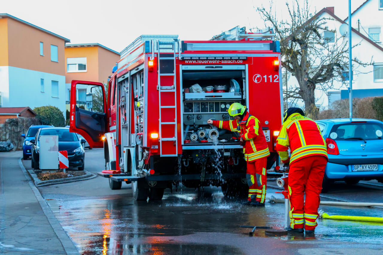 Die Feuerwehr Salach musste am Donnerstagnachmittag gegen 16:30 Uhr zu einem Kellerbrand in die Mozartstraße in Salach ausrücken. Gebrannt hat eine Holzvertäfelung in einem Kellerraum. Beim Eintreffen der Feuerwehr war der Keller bereits stark verraucht. Die Holzvertäfelung wurde dann von der Feuerwehr entfernt und abgelöscht. Bei dem Brand wurde eine Person verletzt und musste vom Rettungsdienst behandelt und ins Krankenhaus gebracht werden. Die Feuerwehr Salach war mit 6 Fahrzeugen und 24 Mann im Einsatz. Die genaue Brandursache wird nun ermittelt.