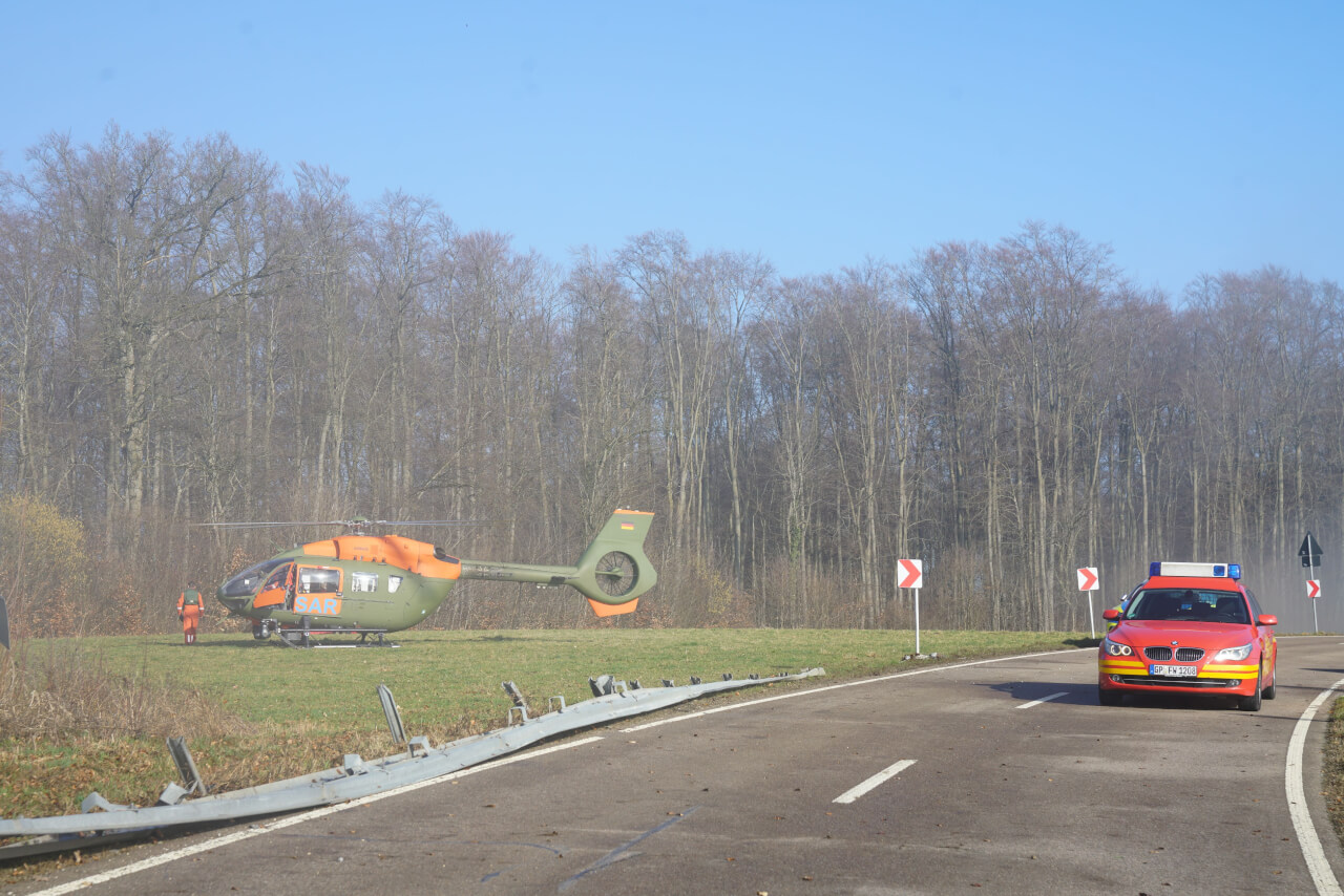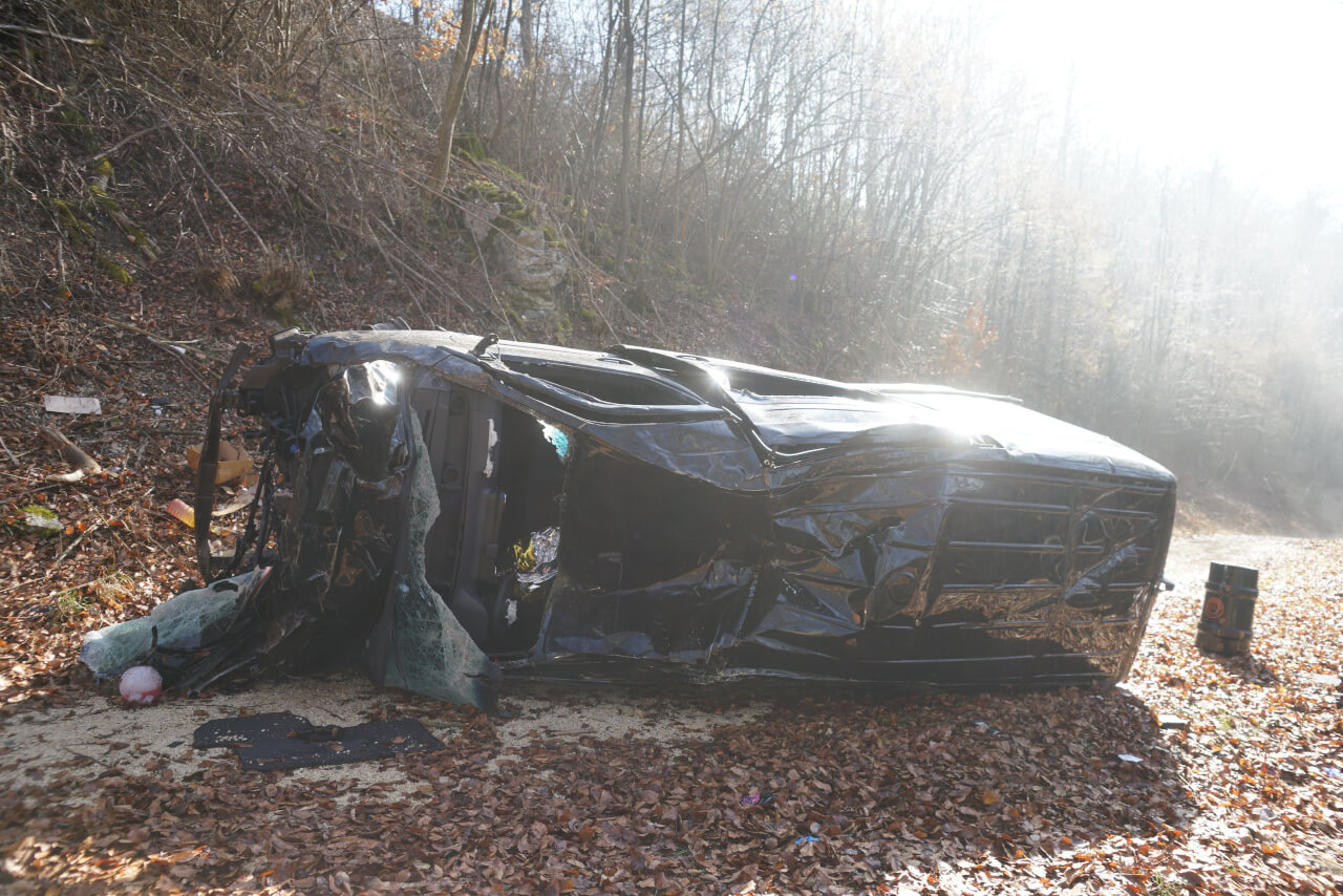 Ulm (ots) - Der Unfall ereignete sich gegen 7.40 Uhr. Der Kleintransporter fuhr von Stötten in Richtung Geislingen. Bei Nebel war der 23-jährige Fahrer wohl mit nicht angepasster Geschwindigkeit unterwegs. In einer Linkskurve geriet er nach rechts gegen die Leitplanken und der Transporter durchbrach diese. Der Transporter flog einen Abhang hinunter und blieb auf einem Nebenweg stehen. Der nicht angeschnallte 21-jährige Beifahrer wurde aus dem Fahrzeug geschleudert. Der Fahrer konnte sich selbst aus dem Auto befreien. Der 21-Jährige erlitt schwere, der 23-Jährige leichte Verletzungen. Mit zwei vor Ort befindlichen Rettungshubschraubern kamen die Männer in Krankenhäuser. Die Kreisstraße war bis 10.50 Uhr voll gesperrt. Der Sachschaden wird auf etwa 30.000 Euro geschätzt.