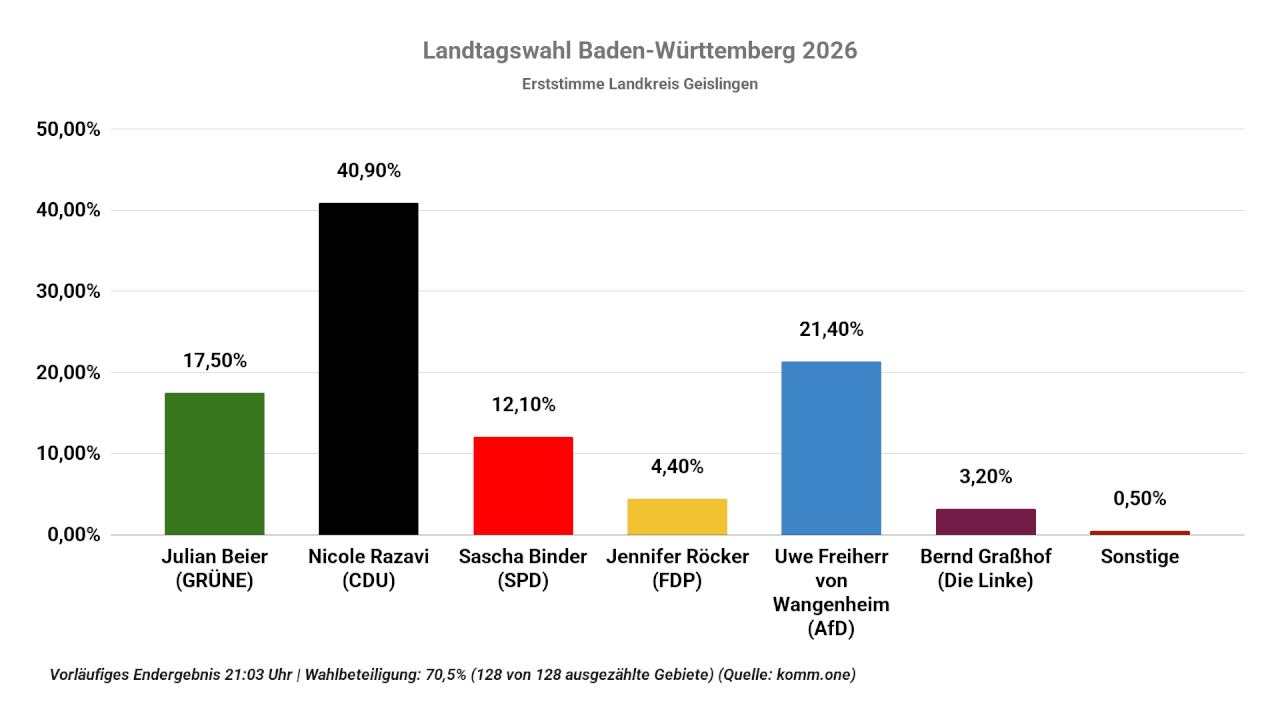 Vorläufiges Endergebnis der Landtagswahl in Baden-Württemberg im Wahlkreis Geislingen