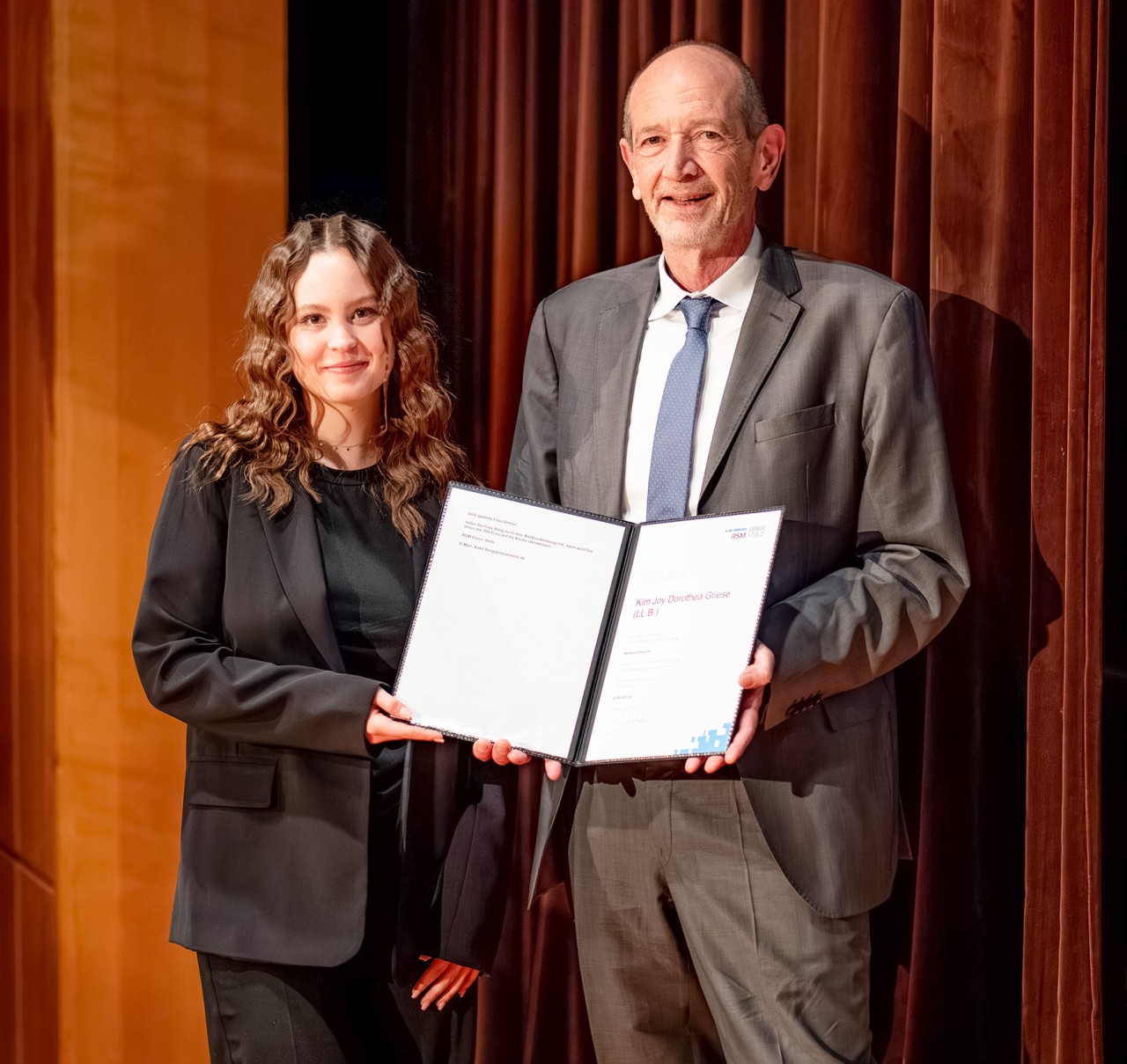 „Mit dieser Auszeichnung würdigen wir die herausragende akademische Leistung und das besondere Engagement im Studiengang Wirtschaftsrecht. Wir möchten damit gezielt Nachwuchstalente fördern und ihre Entwicklung unterstützen,“ so Michael Euchner, Partner bei RSM Ebner Stolz. Kim Griese erhielt den mit 500 Euro dotierten Preis für ihren Bachelor-Abschluss im Rahmen der Absolventenfeier am Standort der Hochschule in Geislingen (Steige).