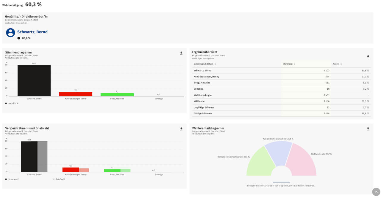 Die Wahlbeteiligung lag in Donzdorf bei 60,3%.