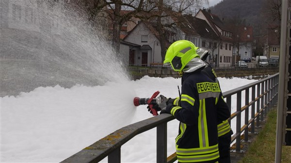 Bad Ditzenbach - Tensidaustritt sorgt für Schaumbildung / Am Mittwoch mussten Einsatzkräfte die B466 zwischen Gosbach und Deggingen mehrere Stunden sperren.