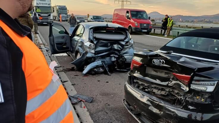 Gingen an der Fils - Auffahrunfall mit drei Fahrzeugen / Am Mittwoch erlitten mehrere Personen bei einem Unfall auf der B10 bei Gingen/Fils leichte Verletzungen.