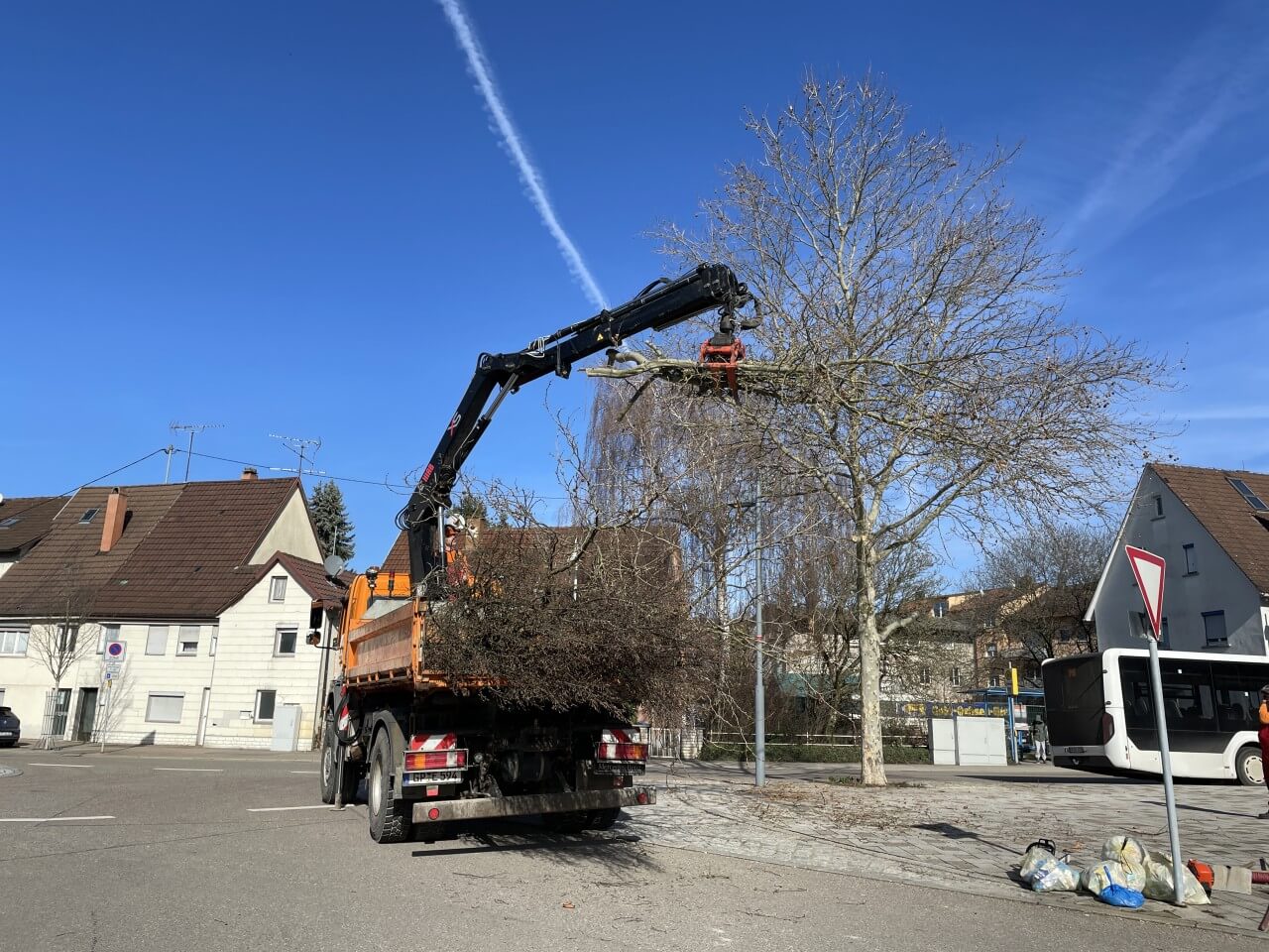 Die Fertigstellung der Mühlbachtrasse rückt zunehmend näher. Künftig wird die Trasse auf der Nordseite über einen neu entstehenden Kreisverkehr angebunden. Die Bauarbeiten für diesen Kreisel starten bereits diesen Sommer. Als vorbereitende Maßnahme müssen fünf Bäume gefällt werden. Die Arbeiten erfolgen noch vor Beginn der gesetzlichen Schonzeit am 1. März. Zum Ausgleich der Fällungen werden an anderer Stelle im Stadtgebiet neue Bäume gepflanzt. Der bestehende Kreisverkehr an der Haupt-, Hindenburg- und Schlossstraße wird langfristig zurückgebaut. Das Kunstwerk „Empfänger“ findet dann eingebettet in einer bienenfreundlichen Bepflanzung seinen neuen Platz auf dem neuen Kreisverkehr.