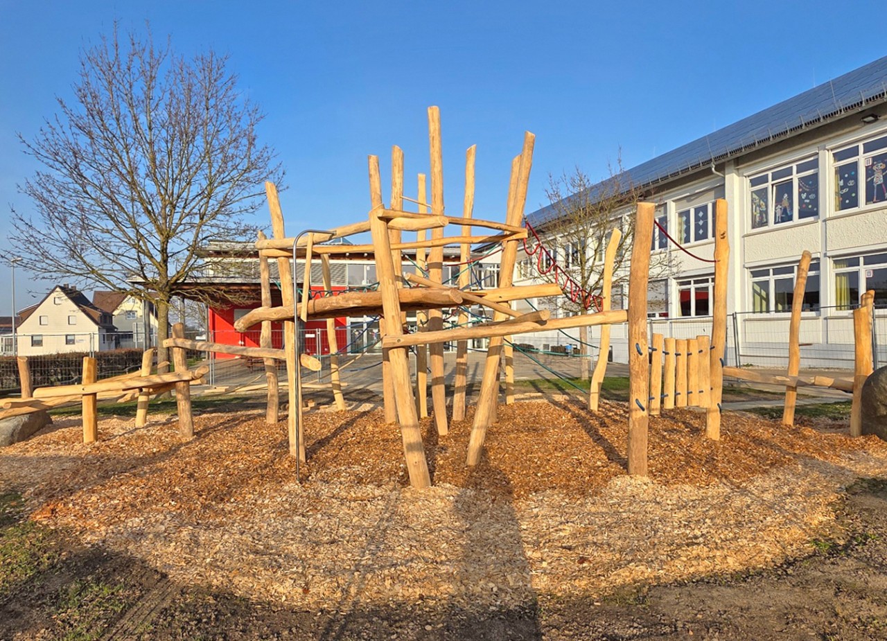 Ein weiterer Teil der finanziellen Förderung durch das Land ist die qualitative Verbesserung der Bewegungsangebote im Außenbereich aufgrund der steigenden Betreuungszahlen, heißt es in der Förderzusage. „Passend zur Erweiterung und Ausstattung der Betreuungsräume im Erdgeschoss der Grundschule wurde der Spielplatz aufgewertet, was nicht nur aus baulicher Sicht das Betreuungsangebot in Sparwiesen abrundet und aufwertet“, erklärt Timo Siebeneich vom Stadtbauamt.