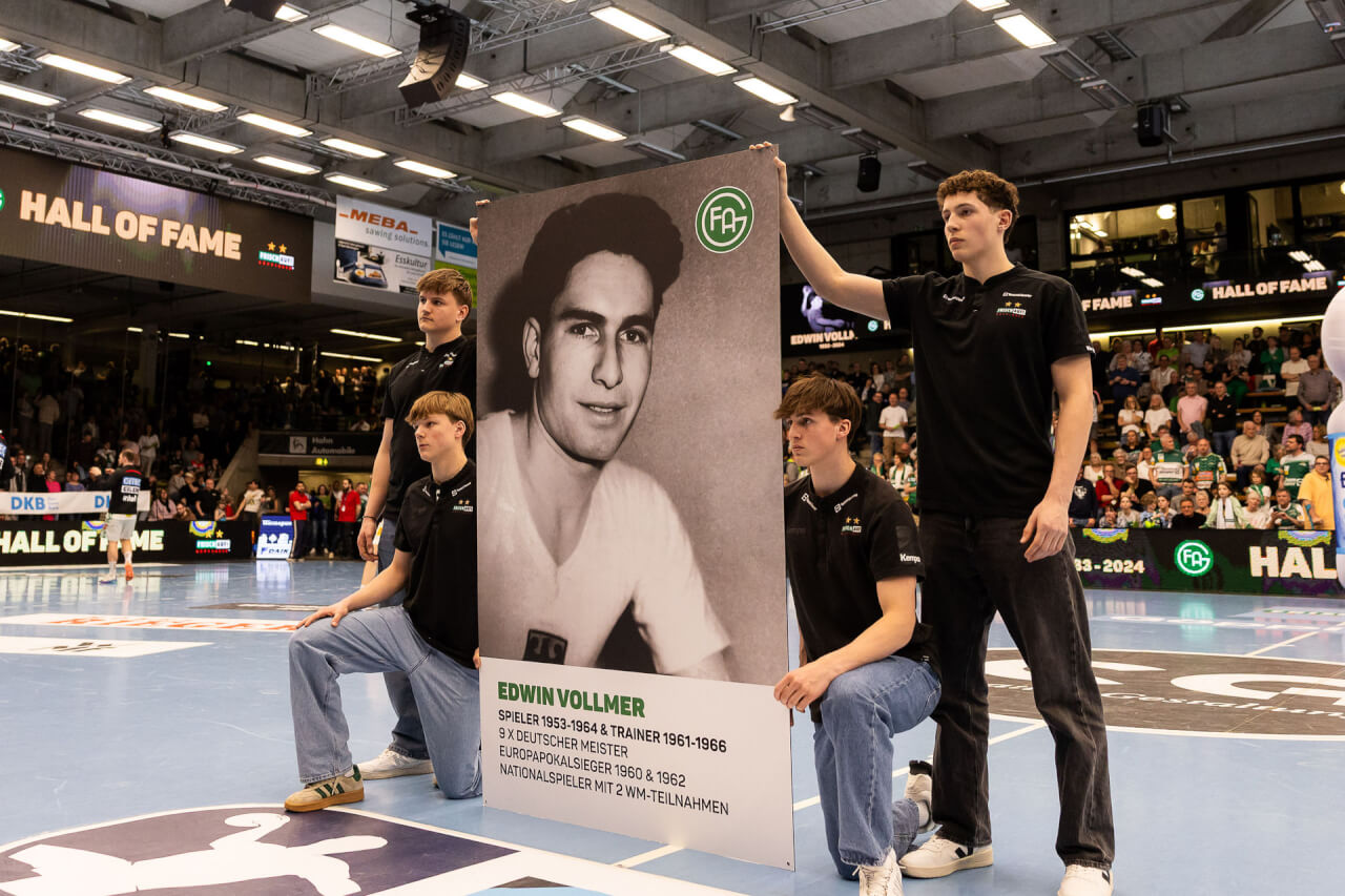 Mit Edwin Vollmer hat FRISCH AUF! Göppingen anlässlich des Bundesliga-Heimspiels gegen den SC Magdeburg am vergangenen Sonntag einen der ganz großen Protagonisten des Göppinger Handballs in seine Hall of Fame auf. Edwin „Schasch“ Vollmer folgt damit Bernhard Kempa, in dessen Zeit als Spielertrainer er aus der eigenen Jugend in das Frisch Auf-Team aufrückte und Horst Singer, mit dem er viele Jahre zusammenspielte. Den dritten Hall-of-Famer Tim Kneule unterstützte er regelmäßig als Besucher von FRISCH AUF!-Heimspielen.