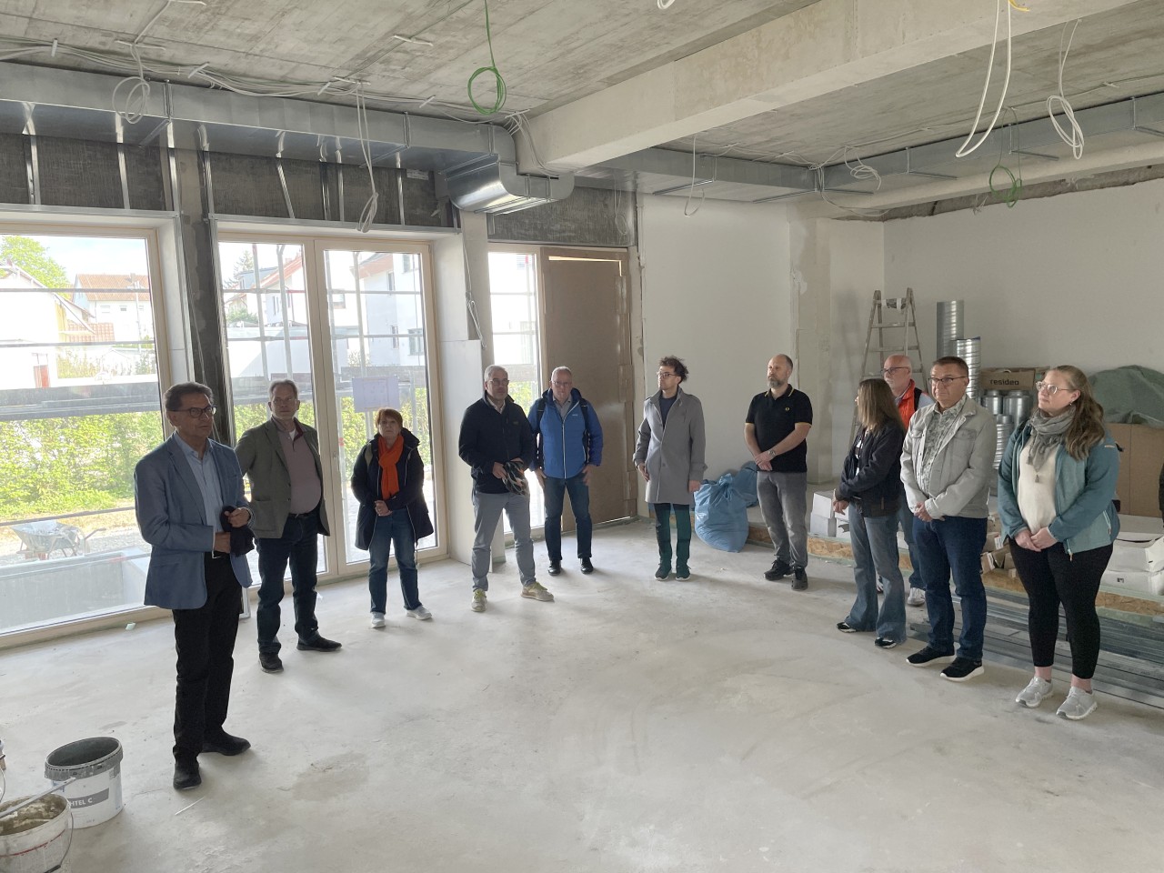 Die Architekten Stephan Knödler und Carla-Cristin Knödler vom Architekturbüro KAZWO führten jüngst die Gemeinderäte durch die neu entstehenden Räume der Musikschule.