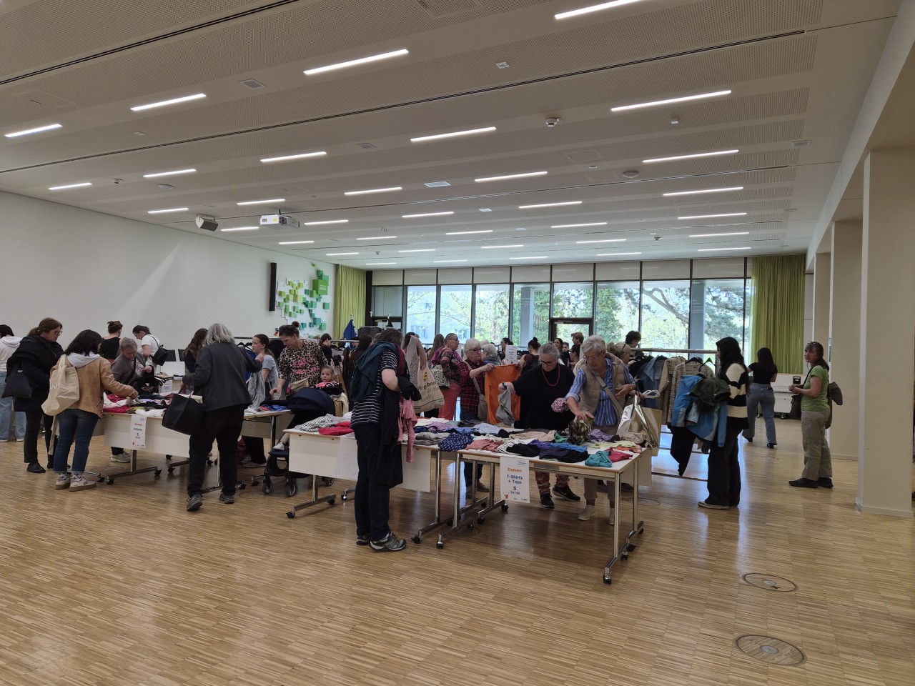 Neu in diesem Jahr war eine Nähecke, die auf großes Interesse stieß. Dort führte eine Näherin kleinere Reparaturen direkt vor Ort durch und gab zudem praktische Tipps rund ums Nähen. Dieses zusätzliche Angebot wurde gut angenommen und ergänzte das Konzept des Kleidertauschtages sinnvoll um den Aspekt der Reparatur und Verlängerung der Nutzungsdauer von Textilien.